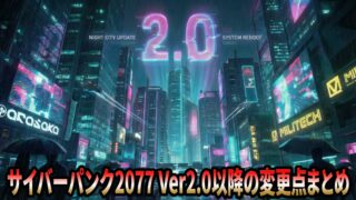 サイバーパンク2077のVer2.0以降の変更点を徹底解説。パークシステムの刷新(15種→5種に統合)、クラフト素材の購入廃止、サイバーウェア容量制、警察システムの本格化まで完全網羅。Ver2.3対応の2026年最新情報。